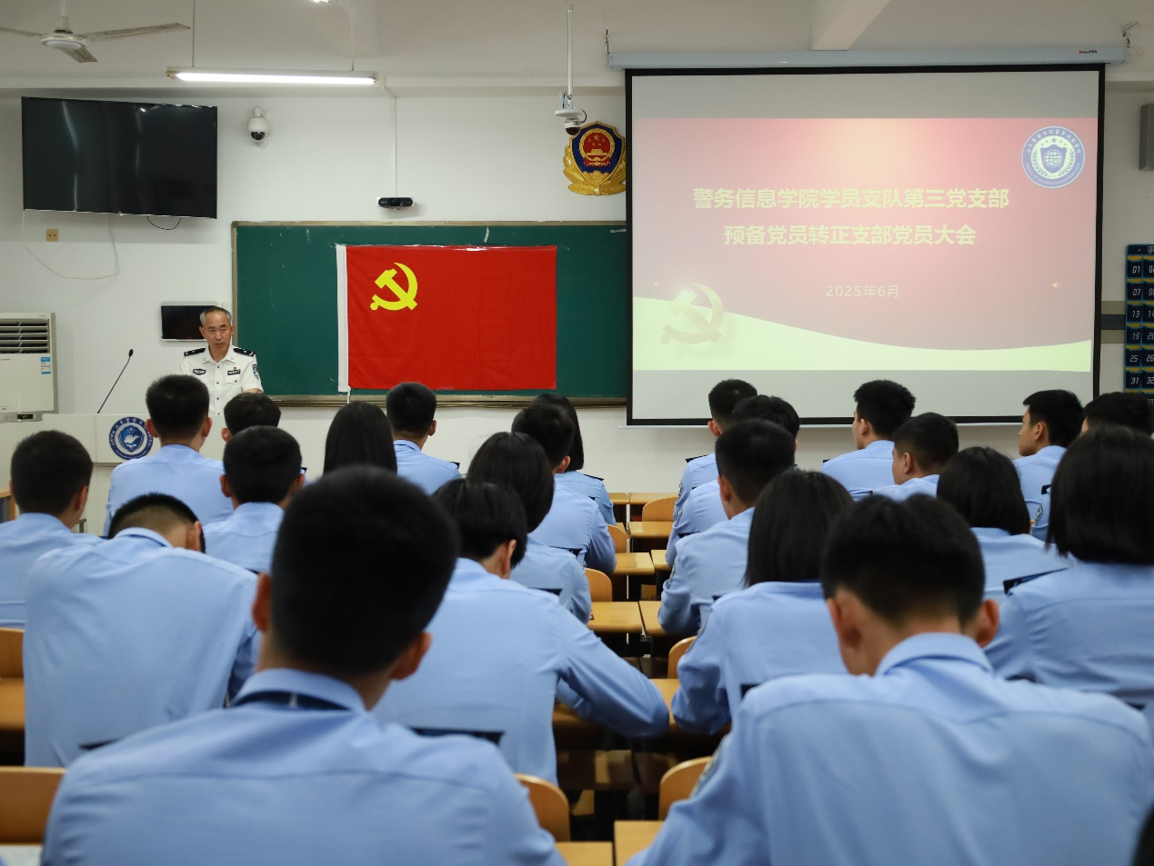 2025年6月17日,警务信息学院学员支队各党支部分别召开全体党员大会,专题研究讨论预备党员转为正式党员事项,学校联系学员支队第一党支部的党委委员、副院长吕绍忠和警务信息学院班子成员分别下沉到第一、第二和第三党支部进行工作指导。