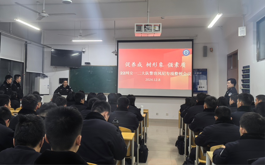 为贯彻落实学校领导干部深入基层联系学生制度,有效构建校领导与学员之间沟通交流的桥梁,帮助同学们解决学习生活中遇到的问题,2024年12月8日,学校党委委员、副院长吕绍忠同志到警务信息学院检查晚点名情况并与2022级网安一、二大队学生座谈。