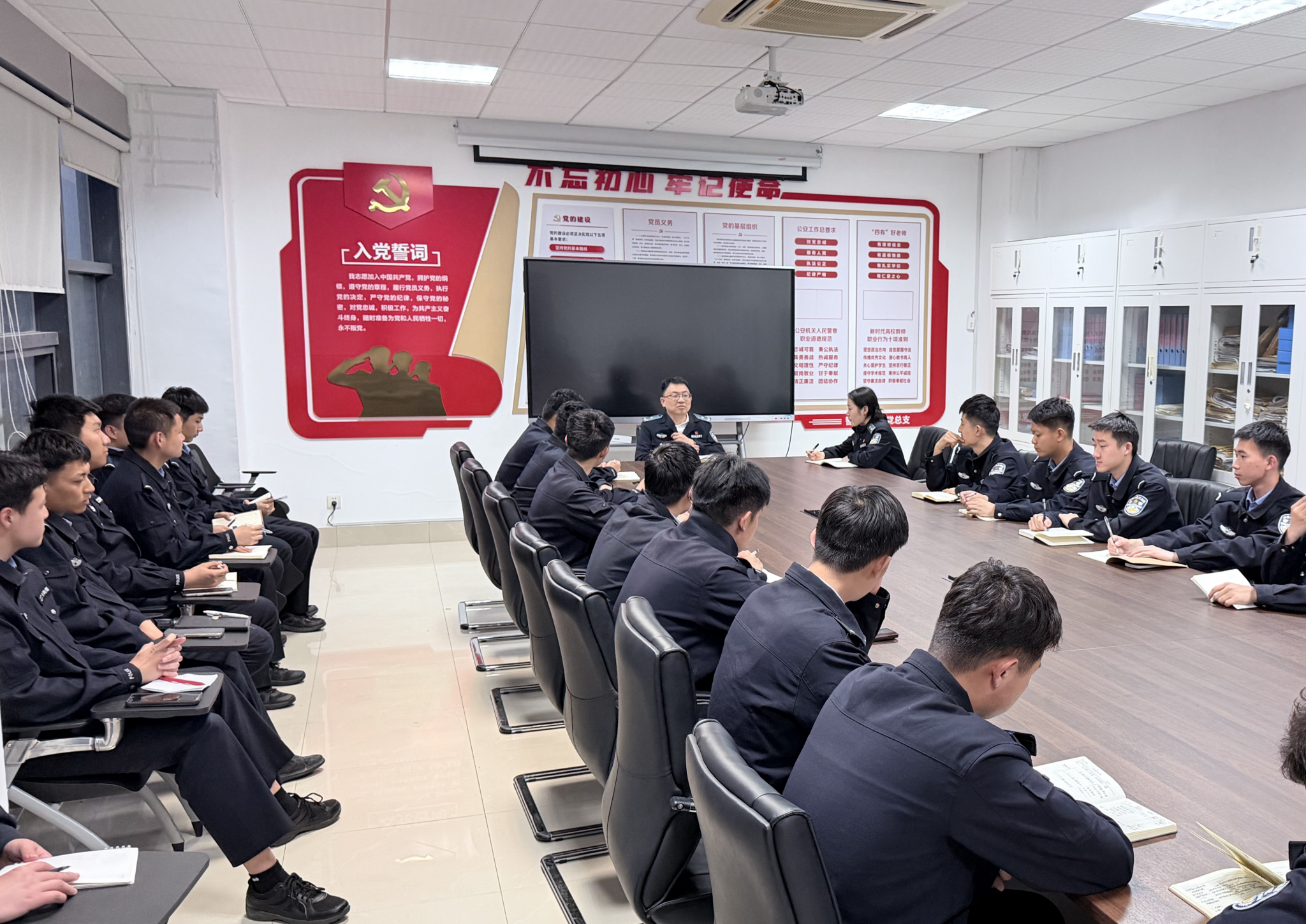 最后,王昊鹏同志进行会议总结。他首先强调了毕业生档案填写工作。他叮嘱同学们,务必秉持对个人未来高度负责的态度,细致谨慎的填写、核对档案信息,确保顺利踏上工作岗位。接着,王昊鹏对毕业生提出三点要求:第一,始终保持认真严谨的态度,坚持深入实际、调查研究;第二,发挥主观能动性,勇于克服不利条件,积极进取,破除困难;第三,立足岗位,踏实肯干,奉献青春力量。警务信息学院永远是学生最坚实的后盾,勉励毕业生要常怀感恩之心,将在母校锤炼的意志与本领应用到工作岗位,续写新篇章。