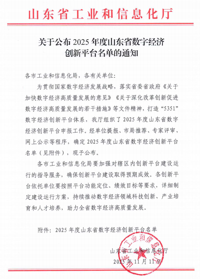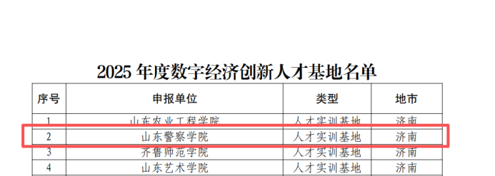 近日,警务信息学院孙志杰副教授牵头申报的数字经济创新人才基地获山东省工业和信息化厅批复,被认定为2025年度山东省数字经济创新平台。