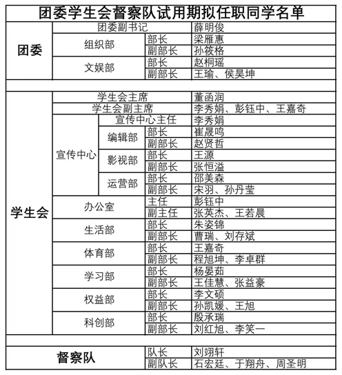 大会第三项,经前期资格审查、竞选演讲和民主投票等环节,张晓娜同志公布团委学生会督察队试用期拟任职同学名单。