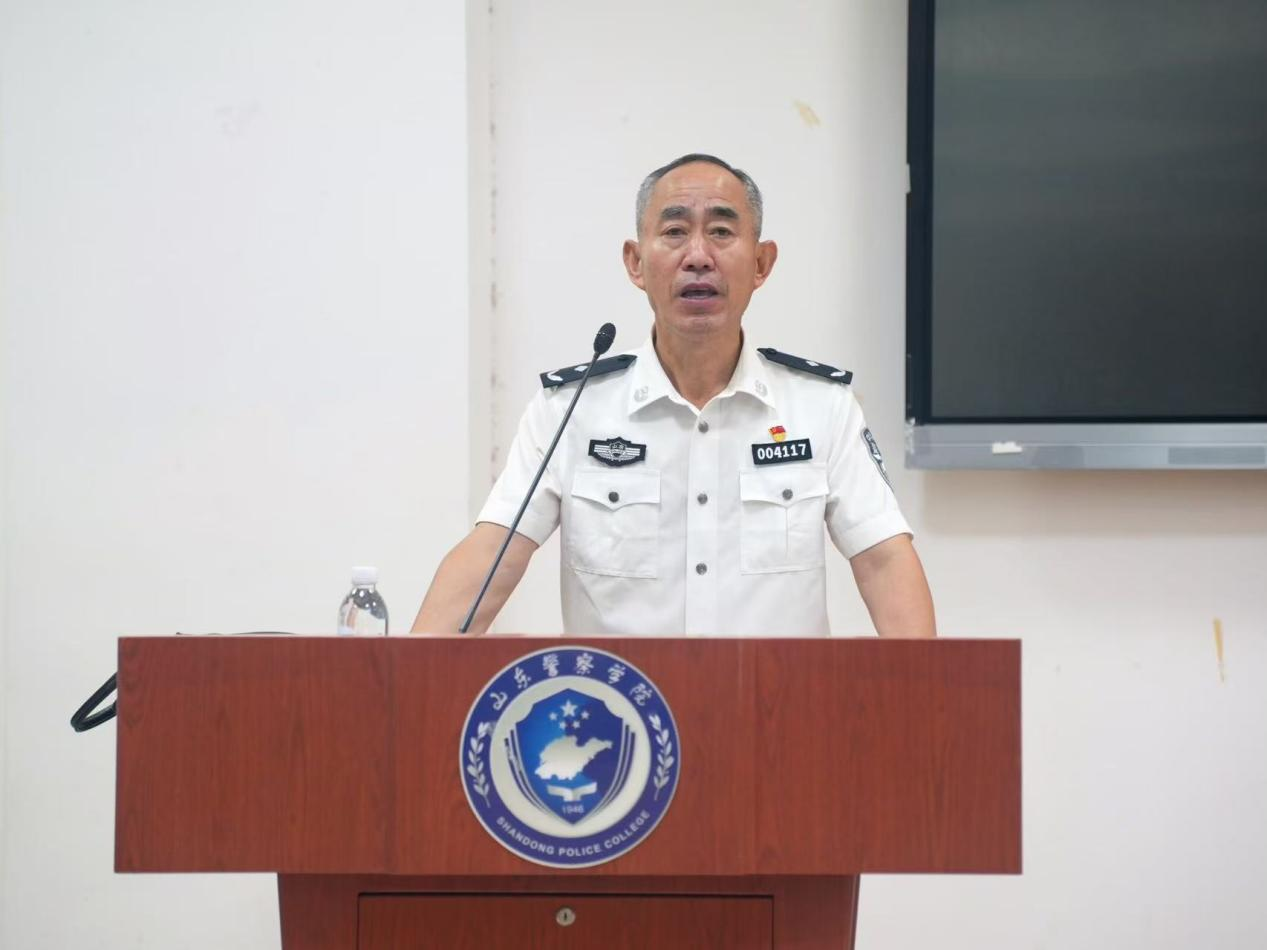 于文亮同志围绕革命先辈创建山东警校的初心使命、代代山警人听党指挥永远不变的警魂、继往开来的齐鲁小清华、顺利完成学业需要重点把握的几个方面等深入讲解为做什么要牢记两种身份,怎样才能树好三观,践行四铁要求必须具备的综合素质,勉励新同学坚定报考初心,扣好从警的第一粒扣子。于文亮强调,要时刻牢记公安院校大学生第一身份是预备警官的身份定位,清晰把握山东警察学院诞生的时代背景与为公安机关培养后备人才的职责使命,主动融入警院发展大局。一要铸牢忠诚警魂,坚定理想信念,厚植家国情怀,把正确世界观、人生观、价值观融入从警生涯,筑牢预备警官的信仰之基。二要严守纪律规矩,涵养优良作风。坚持用高标准、严要求约束自身言行,主动摒弃松散懈怠心态,自觉涵养求真务实的学风与纪律严明的作风,努力成长为对国家忠诚、对社会负责、对人民有益的合格警务人才。三要积极投入学习训练,锤炼过硬本领。聚焦公安实战需求,既要学好专业知识,也要强化实战技能,主动克服学习训练中的困难,努力提升综合素质,为未来胜任公安工作做好充分准备。