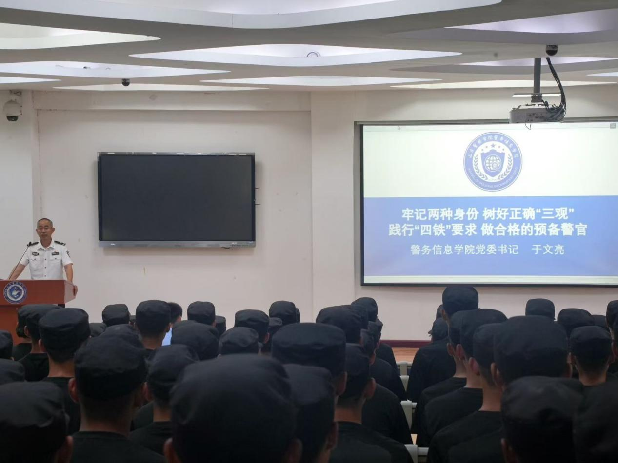 九月秋风劲,逐梦正当时。为帮助2025级新同学扣好从警生涯“第一粒扣子”,明确成长方向,坚定选择山警,报国为民初心,9月14日上午,警务信息学院于教学楼E201组织开展明确“两种身份”,树立正确“三观”,践行“四铁”要求,做合格预备警官思政教育活动。警务信息学院党委书记于文亮授课,2025级学员大队长、全体2025级新生参加。