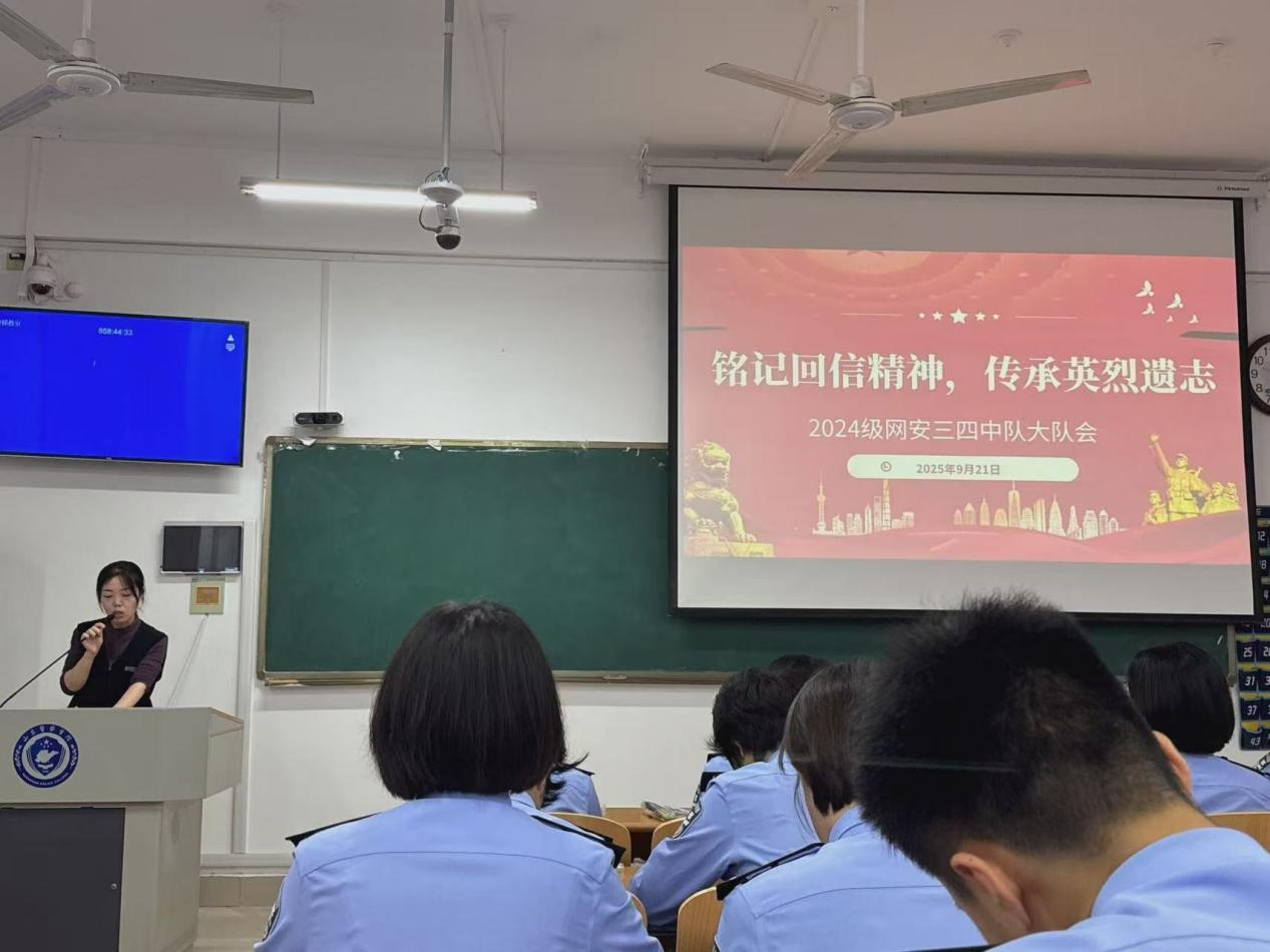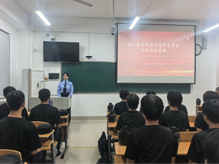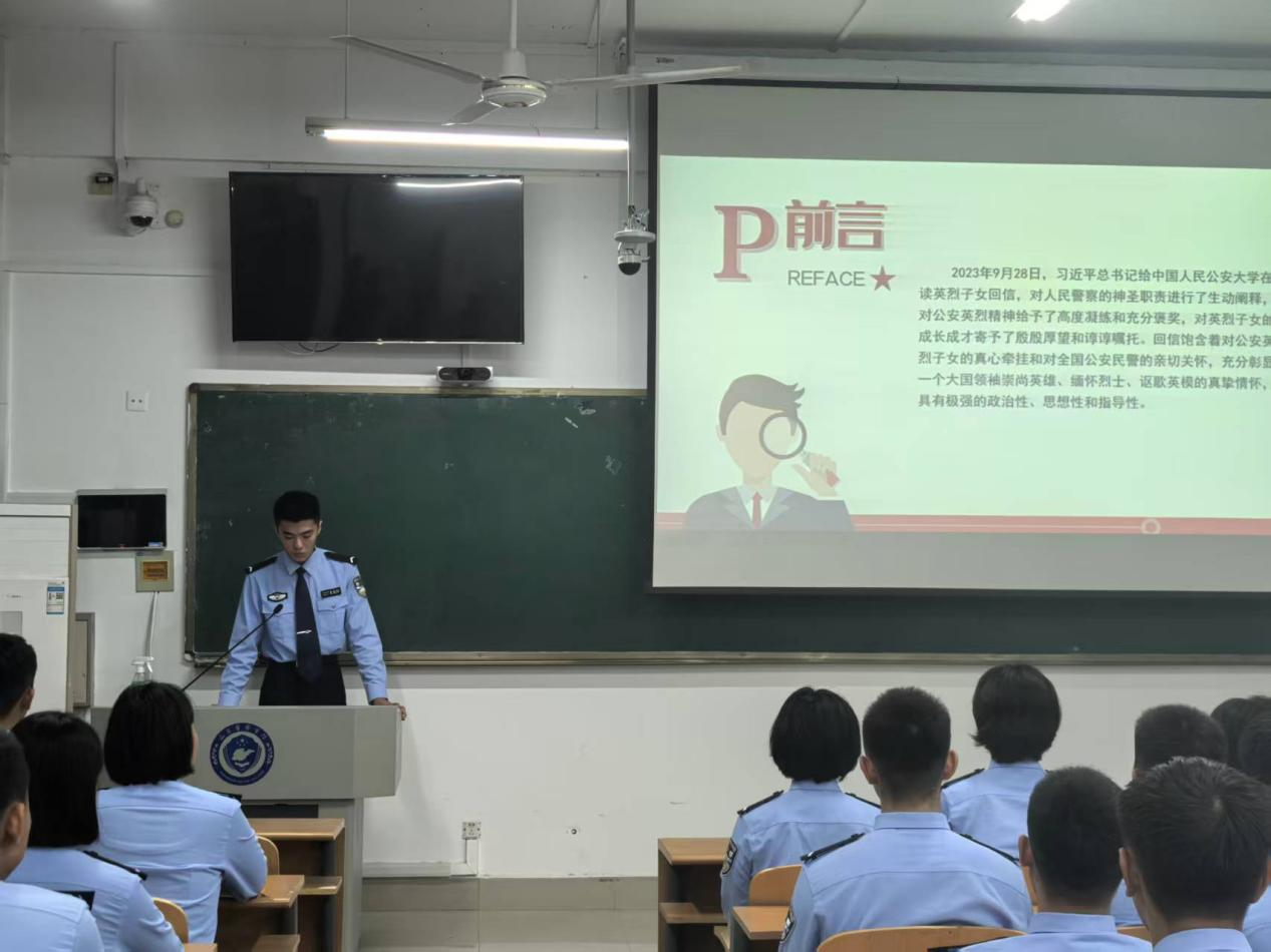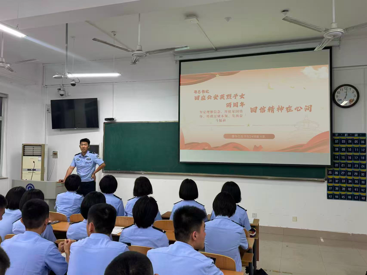 在习近平总书记给中国人民公安大学在读英烈子女回信两周年之际,为深入学习贯彻习近平总书记重要回信精神,引导全院青年学警以英雄父辈为榜样,坚定成为党和人民忠诚卫士的信念 ,9月21日,警务信息学院组织各大队于自习室召开主题队会,深入讲解回信背景、精神内涵与实践要求,引导学生深刻理解英烈精神的时代价值与公安使命的重大意义。