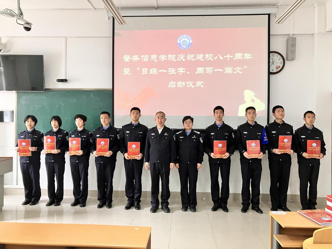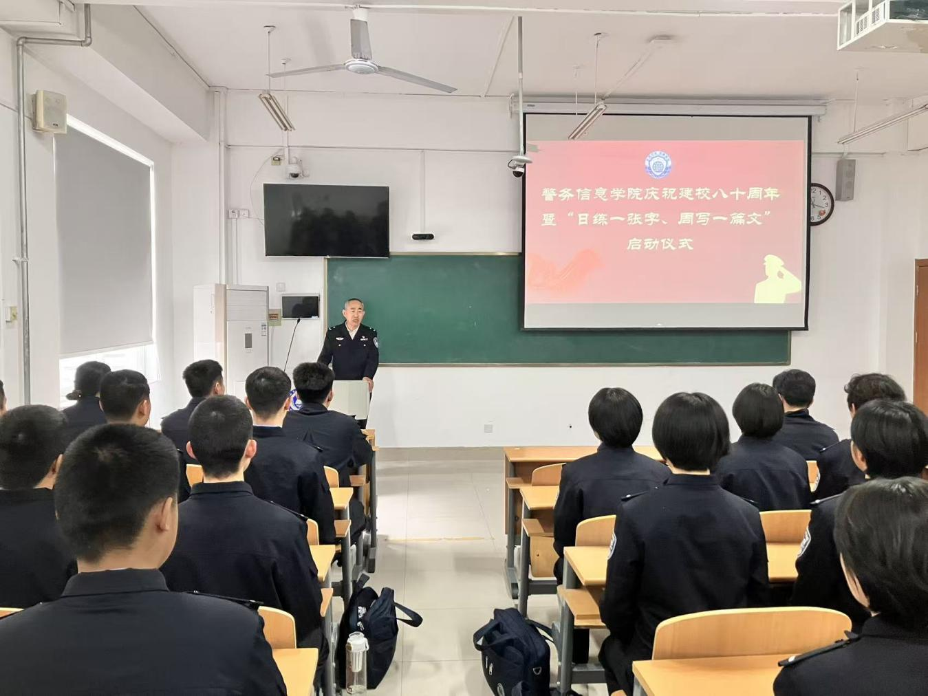 为进一步加强学风建设,提升学生综合素养,夯实从警根基,以良好的状态迎接学校八十年校庆,2026年3月30日,警务信息学院于教学楼A203开展庆祝建校八十周年爱校教育暨启动“日练一张字、周写一篇文”活动。
