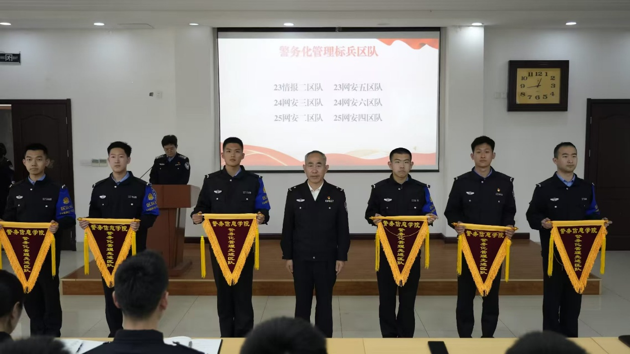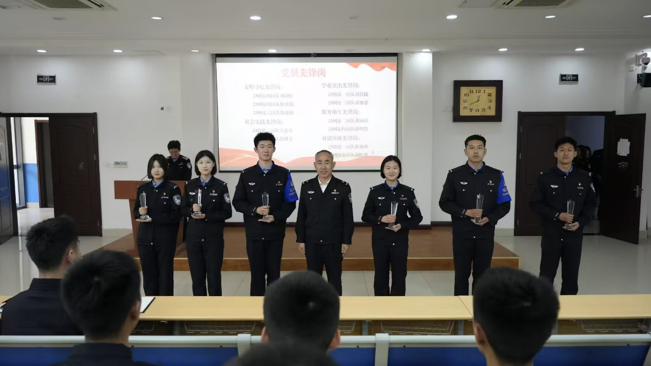 为积极响应学校警务化管理提升月号召,扎实落实立德树人根本任务,进一步深化警务化管理成效,锤炼学生过硬纪律作风,4月10日中午,警务信息学院于教学楼E101召开了党团先锋岗暨三月份警务化管理表彰大会。警务信息学院党委书记于文亮,全体学生大队长、获奖学生、各区队长参会,学院党委副书记兼学生支队长张晓娜同志主持会议。